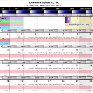 Graphiques Conception et Naissance Ministère de Trois Ans et Demi Ministère de 70 Semaines Cours Sacerdotaux Jour Hébreu Calendrier Perpétuel Yeshua Environ 30 Naissance et Ministère Généalogie de Yeshua Conception et Naissance Calendrier Perpétuel Cours Sacerdotaux Jour Hébreu Ministère de 70 Semaines Ministère de Trois Ans et Demi Yeshua Environ 30 Naissance et Ministère Généalogie de YeshuaPages de Calendrier Mois de Shevat, 4026 Mois d’Adar, 4026 Mois de l’Aviv, 4027 Mois de Lyyar, 4027 Mois de Sivan, 4027 Mois de Tammuz, 4027 Mois d’Av, 4027 Mois d’Elul, 4027 Mois de Tishri, 4027 Mois de Heshvan, 4027 Mois de Kislev, 4027 Mois de Tevet, 4027 Mois de Shevat, 4027 Mois d’Adar, 4027 Mois d’Adar-Bet, 4027 Mois d’Aviv, 4028 Mois de Lyyar, 4028 Mois de Sivan, 4028 Mois de Shevat, 4026 Mois d’Adar, 4026 Mois de l’Aviv, 4027 Mois de Lyyar, 4027 Mois de Sivan, 4027 Mois de Tammuz, 4027 Mois d’Av, 4027 Mois d’Elul, 4027 Mois de Tishri, 4027 Mois de Heshvan, 4027 Mois de Kislev, 4027 Mois de Tevet, 4027 Mois de Shevat, 4027 Mois d’Adar, 4027 Mois d’Adar-Bet, 4027 Mois d’Aviv, 4028 Mois de Lyyar, 4028 Mois de Sivan, 4028 Mois de Shevat, 4026 Mois d’Adar, 4026 Mois de l’Aviv, 4027 Mois de Lyyar, 4027 Mois de Sivan, 4027 Mois de Tammuz, 4027 Mois d’Av, 4027 Mois d’Elul, 4027 Mois de Tishri, 4027 Mois de Heshvan, 4027 Mois de Kislev, 4027 Mois de Tevet, 4027 Mois de Shevat, 4027 Mois d’Adar, 4027 Mois d’Adar-Bet, 4027 Mois d’Aviv, 4028 Mois de Lyyar, 4028 Mois de Sivan, 4028